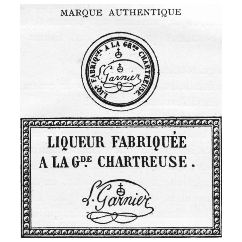 The signature is always at the bottom right of the bottle label and is used as a brand. It was created in 1852 by Father François Dom Louis Garnier, born on November 8, 1804 in the town of Lissac, Haute-Loire. It was on November 20, 1852, Louis Garnier officially registered the brand for the Carthusians and did it again in 1869 to protect the brand against the ongoing counterfeited bottles of Chartreuse.