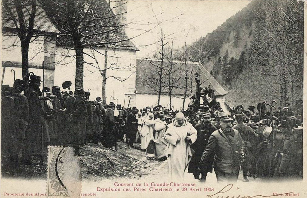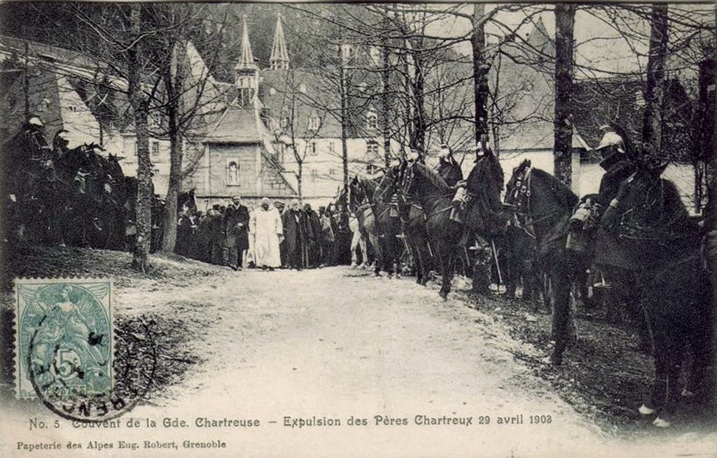 The 1901 law against religious congregations caused the simultaneous closure of 10 French Chartreuse. The community of the Great Chartreuse was expelled manu militari by the public authorities in 1903, despite the protests of the Dauphinois crowd. Some monks settled at the Chartreuse de Farneta in Italy, other Carthusians had to emigrate. In 1921, the Chartreux Fathers set up their new distillery in Marseille. For a decade, they will relaunch their sales in France.