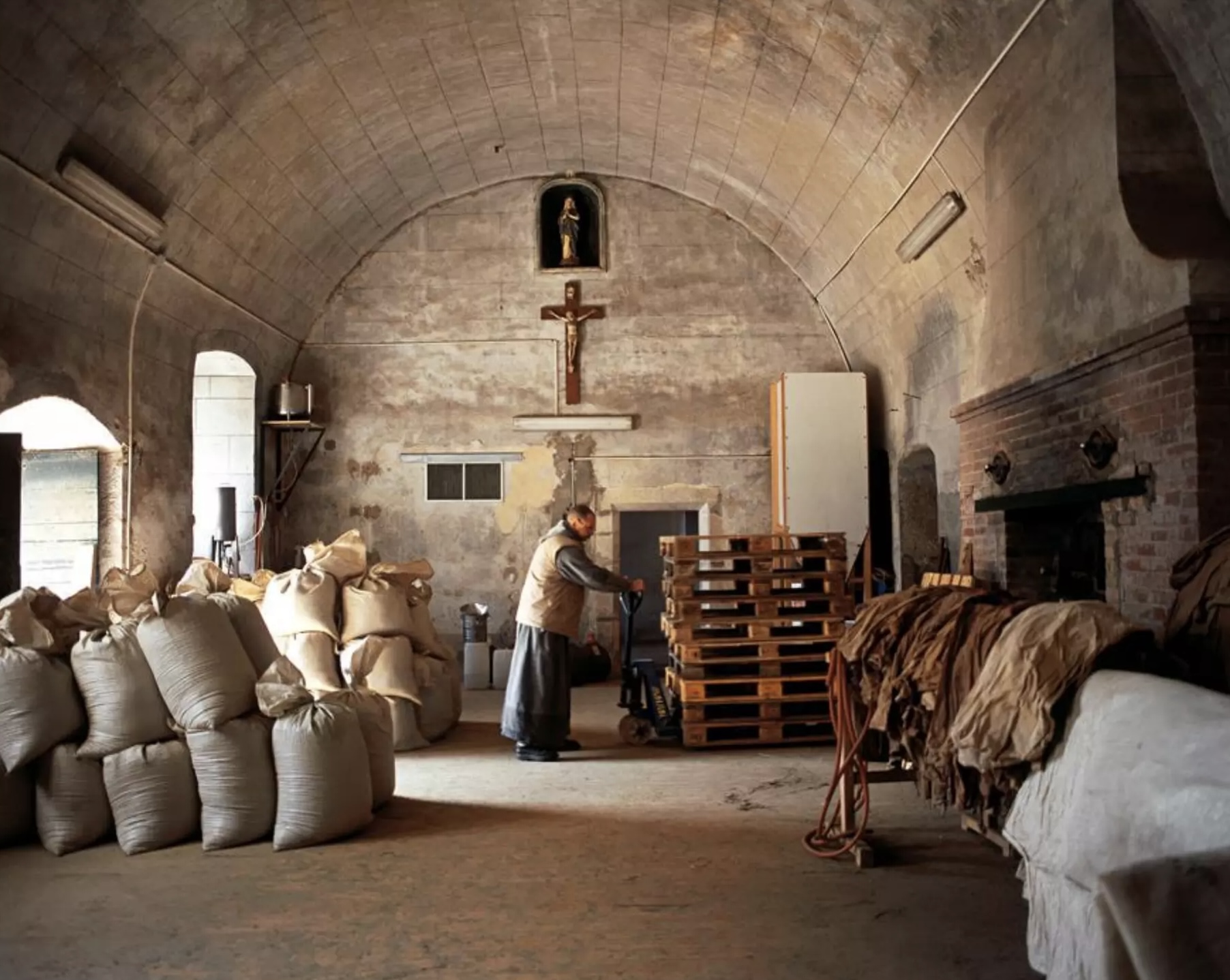 The former bakery of the Monastery, nowadays nicknamed “plant room” the Carthusian fathers sort, grind, weigh and mix the plants of Chartreuse. 130 botanicals go into the production of Chartreuse, 30% come from Italy, Switzerland and France, the remainder 70% come from other countries. 1.2 tons of botanicals are macerated in 42,000 liters of base spirit. The Green Chartreuse is macerated for a total of 6 weeks in a beetroot base spirit while the yellow undergoes 2-3 weeks of maceration in a grape based spirit. It is only after several years of aging in uncharred French oak casks (in the world’s largest liqueur cellar) that the monks decide when the liqueur is ready for bottling.