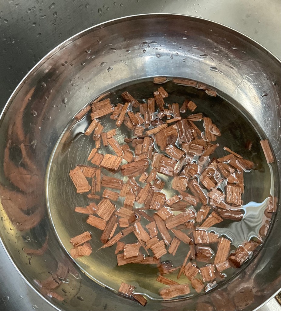 Day 8: If you wish to fine the Amaro to clarify and remove off-flavors, see my Notes on fining and pictures below. Filter one or two more times, then add 6 tsp (or 2 tbsp) of French oak chips after rinsing them in cold water (see picture below). Rest for 3-4 weeks in a dark spot at room temperature. Filter one more time before bottling. You’re done! Refrigerate or put in the freezer afterwards.